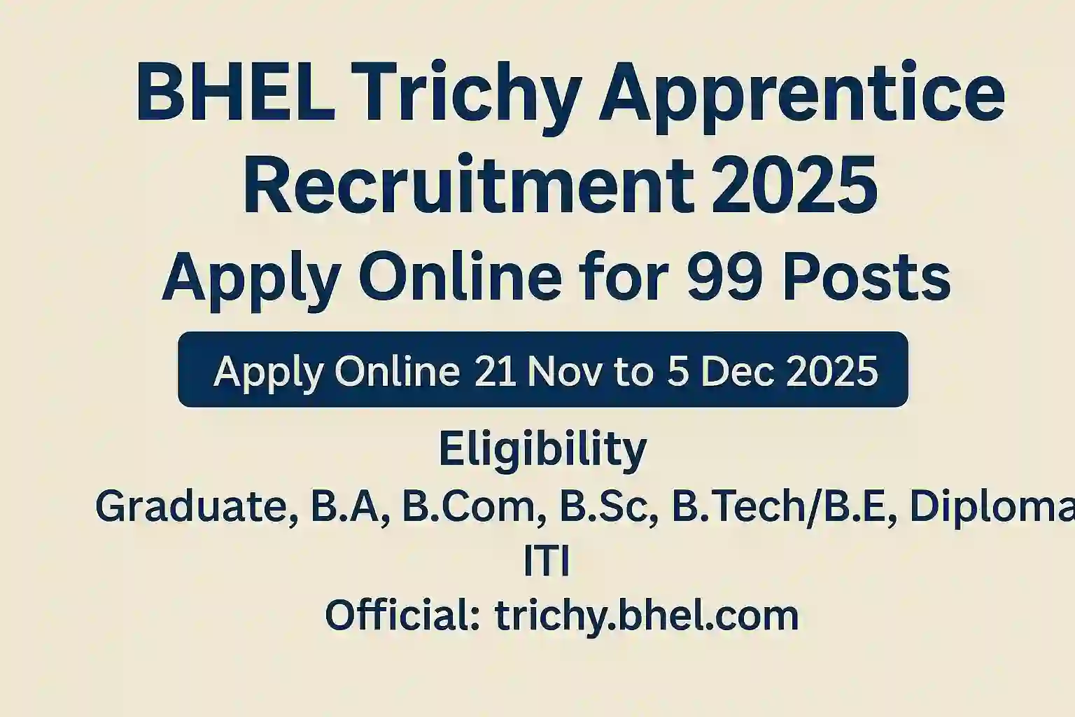 BHEL Trichy Apprentice Recruitment 2025 – for 99 Apprentice Posts