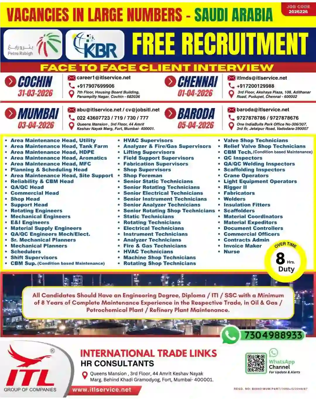 If you are looking for overseas jobs 2026, this is the right place to find genuine and updated job opportunities. Many companies across countries like UAE, Saudi Arabia, Oman, Qatar, Europe, and Kuwait are currently hiring skilled and unskilled workers from India with free recruitment and attractive salary packages.
