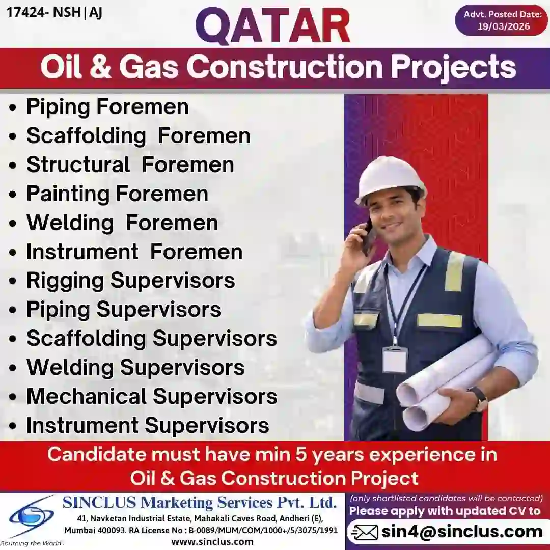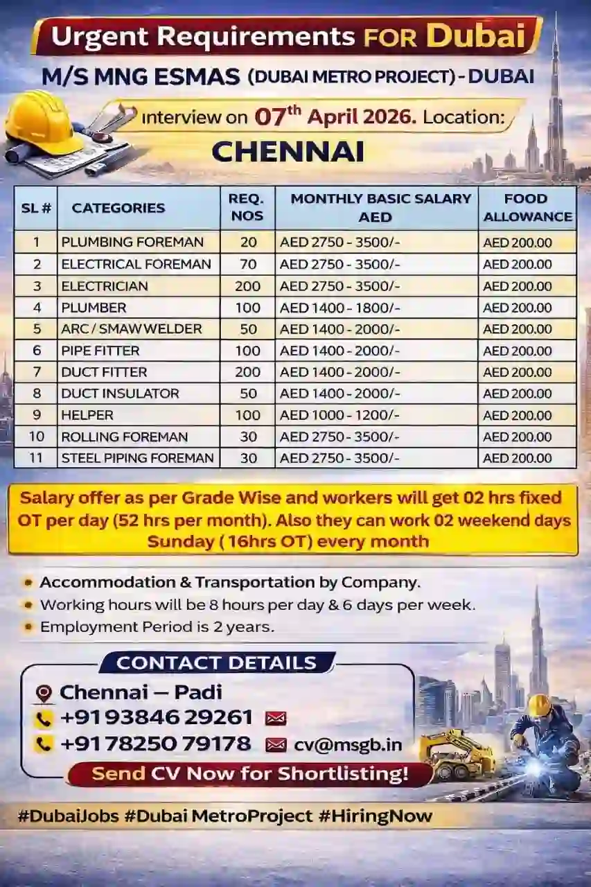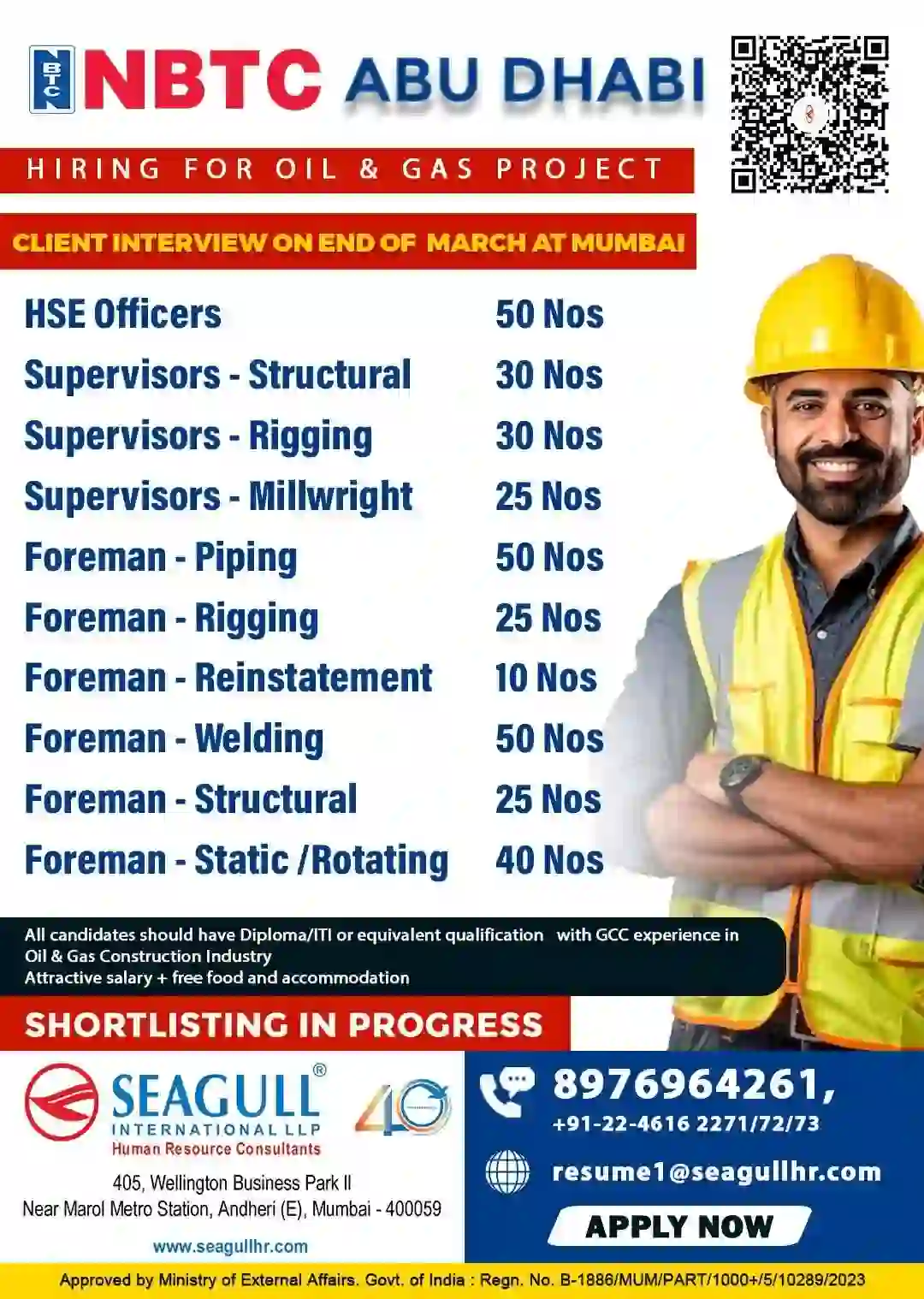 - UAE (Dubai & Abu Dhabi) – Construction, Oil & Gas, Drivers, Technicians