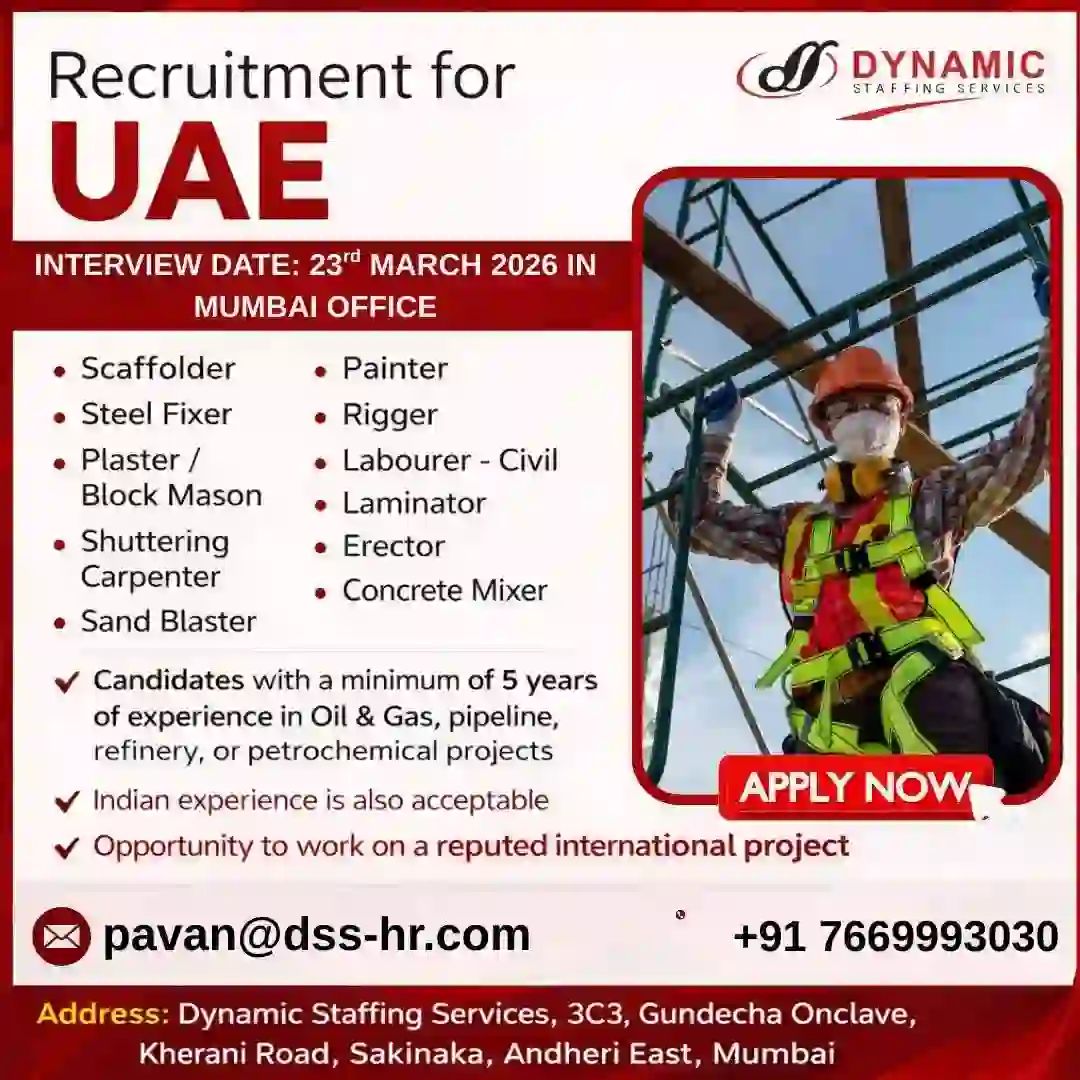 📦 1. UAE Recruitment – Construction Jobs (Mumbai Interview)