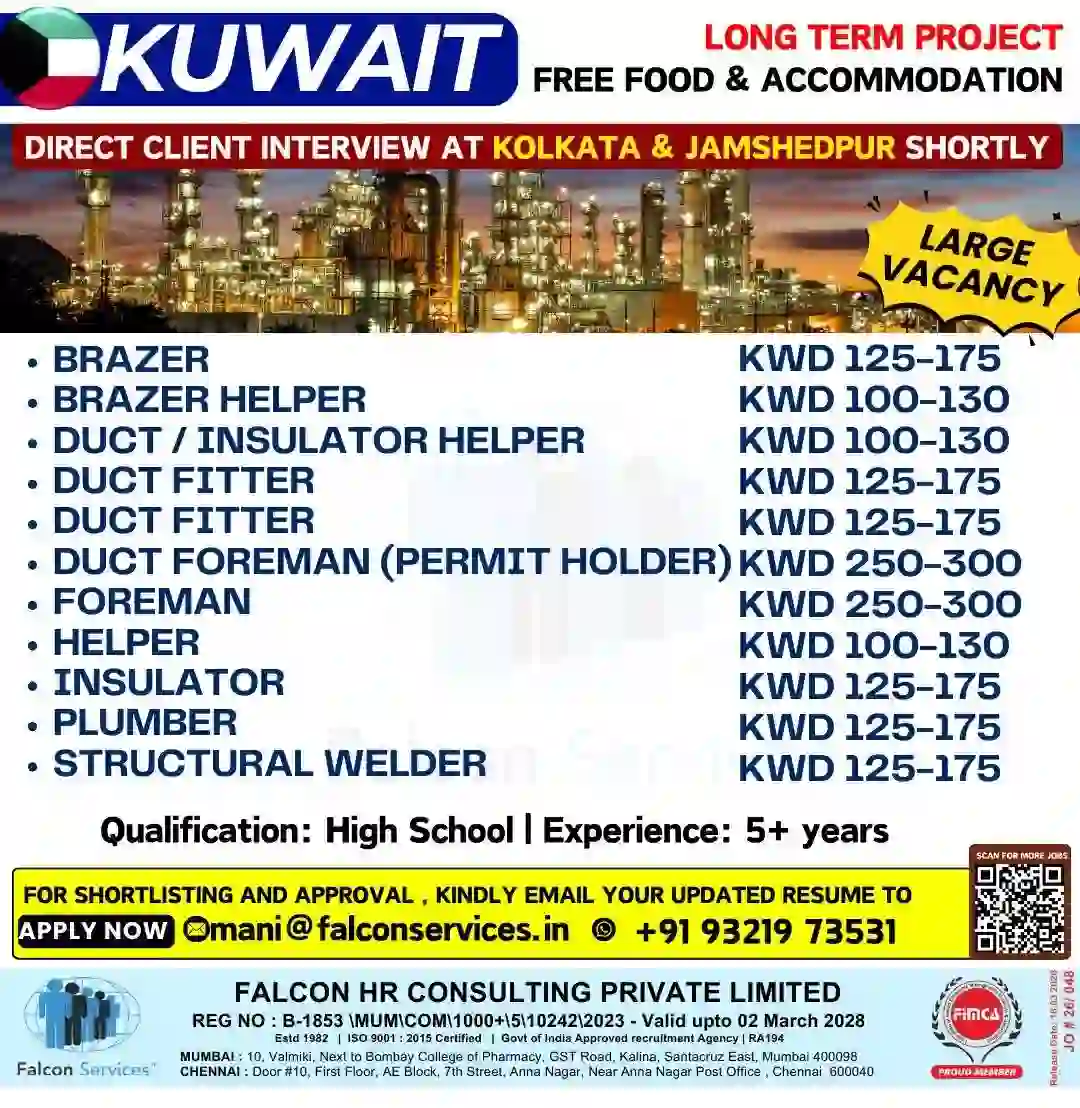 - Kuwait – Long-term project jobs with accommodation and benefits