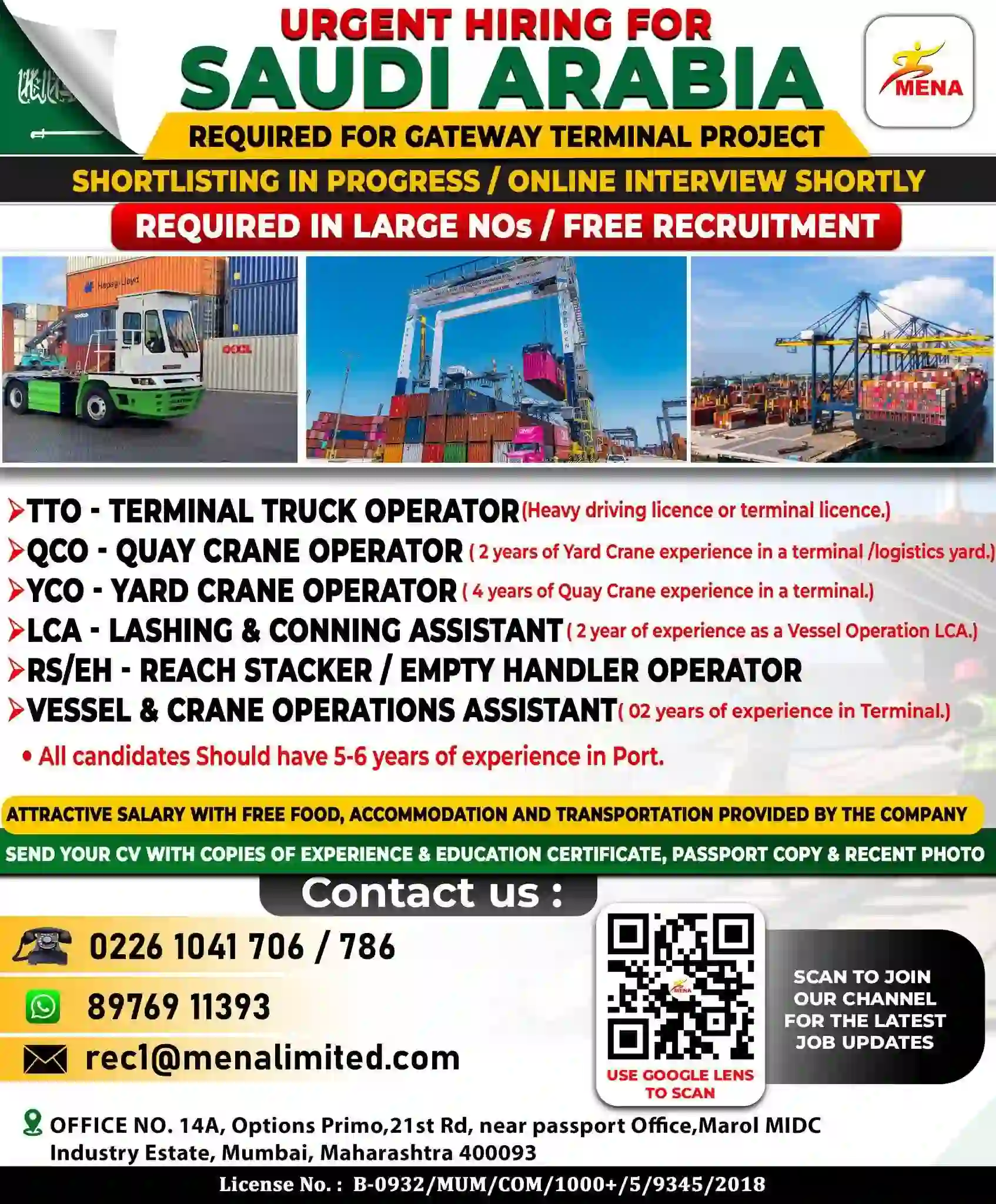 - Saudi Arabia (KSA) – Engineering, Pipeline Projects, Industrial Jobs