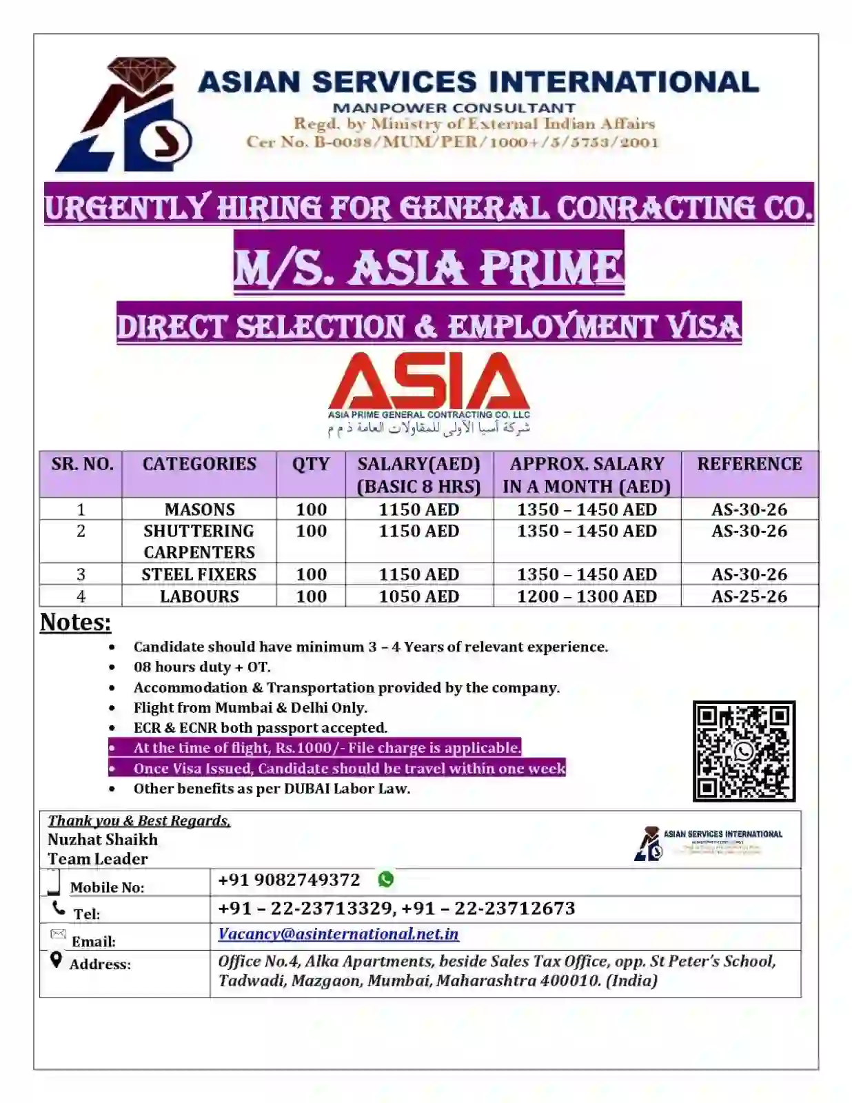 📦 4. UAE Jobs – Asia Prime Contracting Company
